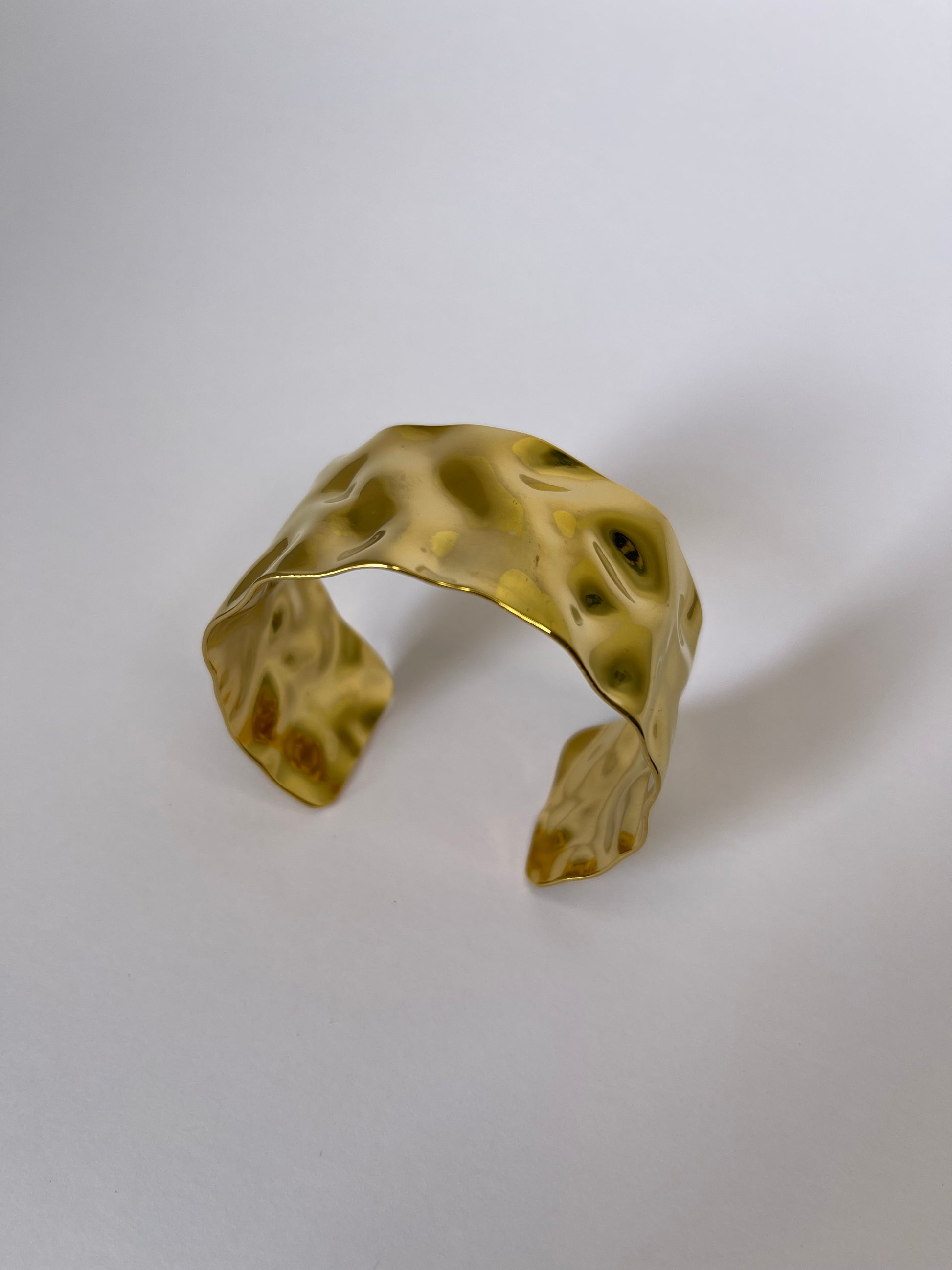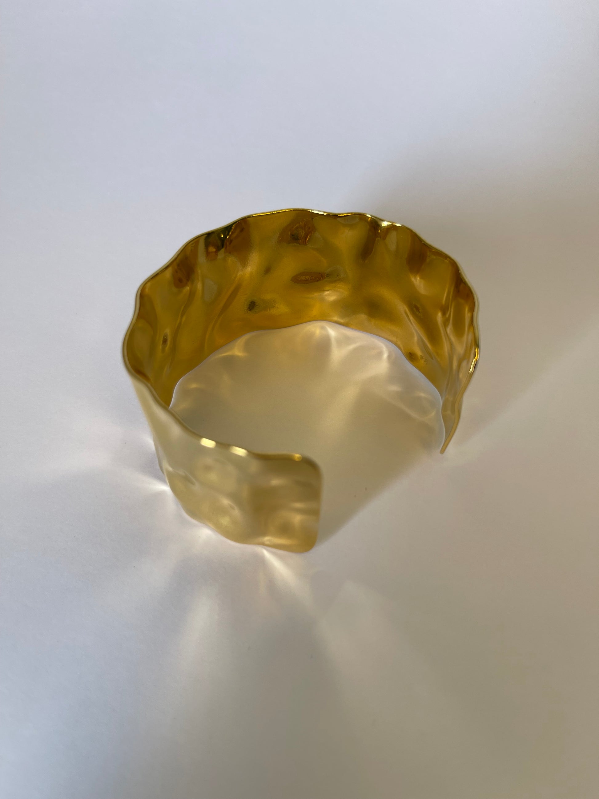 Introducing our "Chunky Cuff Bangle" — a masterfully crafted piece that seamlessly combines timeless elegance with contemporary design. This bracelet is made from high-quality stainless steel and adorned with a luxurious 18K gold plating, creating a sophisticated accessory that stands the test of time.