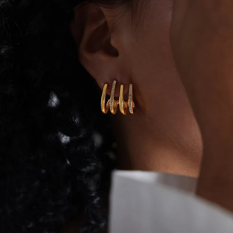 Introducing our "Mystict" — an exquisite earrings that beautifully captures the essence of elegance and sophistication. Crafted from premium 316L stainless steel, the C Shape Hoop Huggie Earrings are tastefully plated with 18K gold, creating a luxurious foundation for this stunning set.