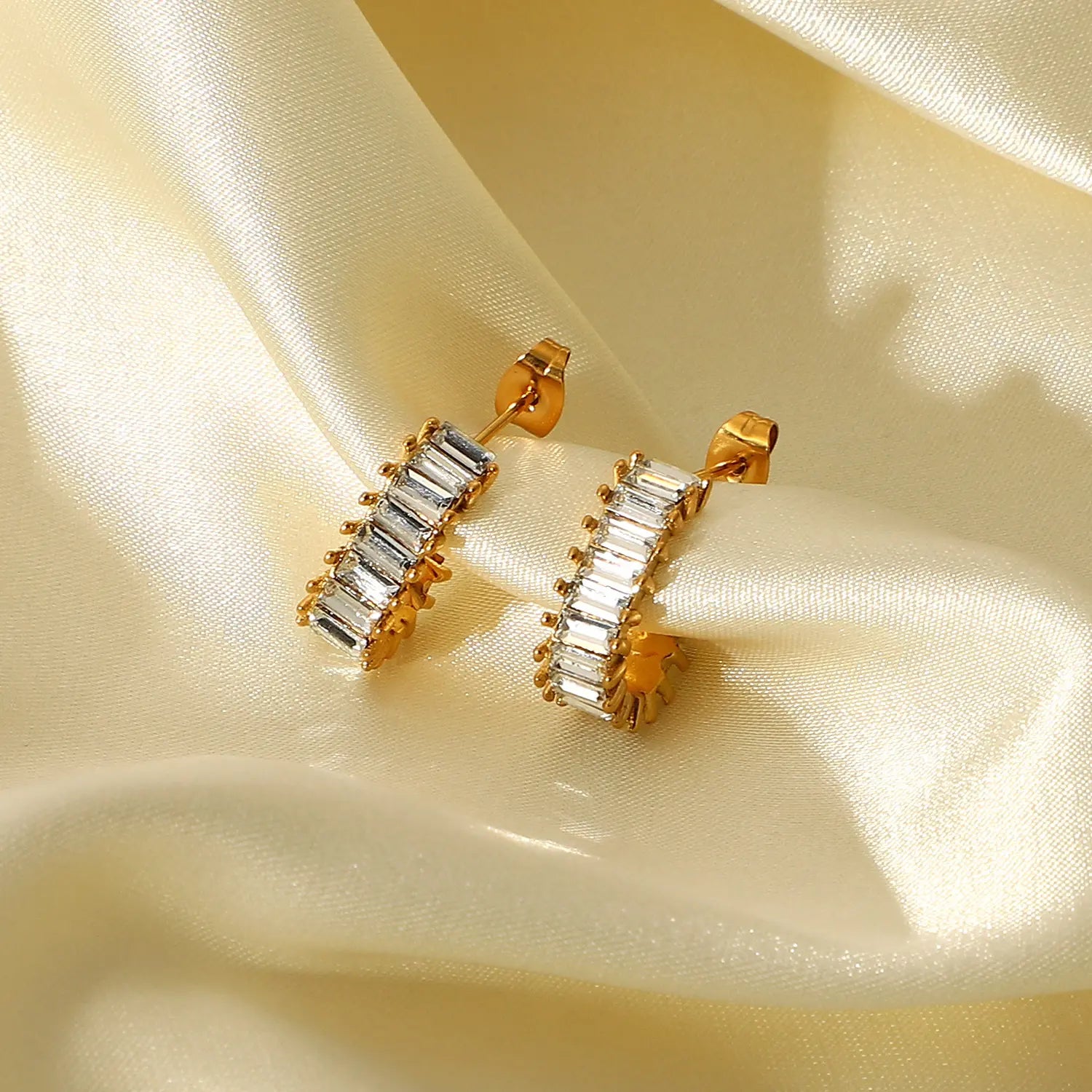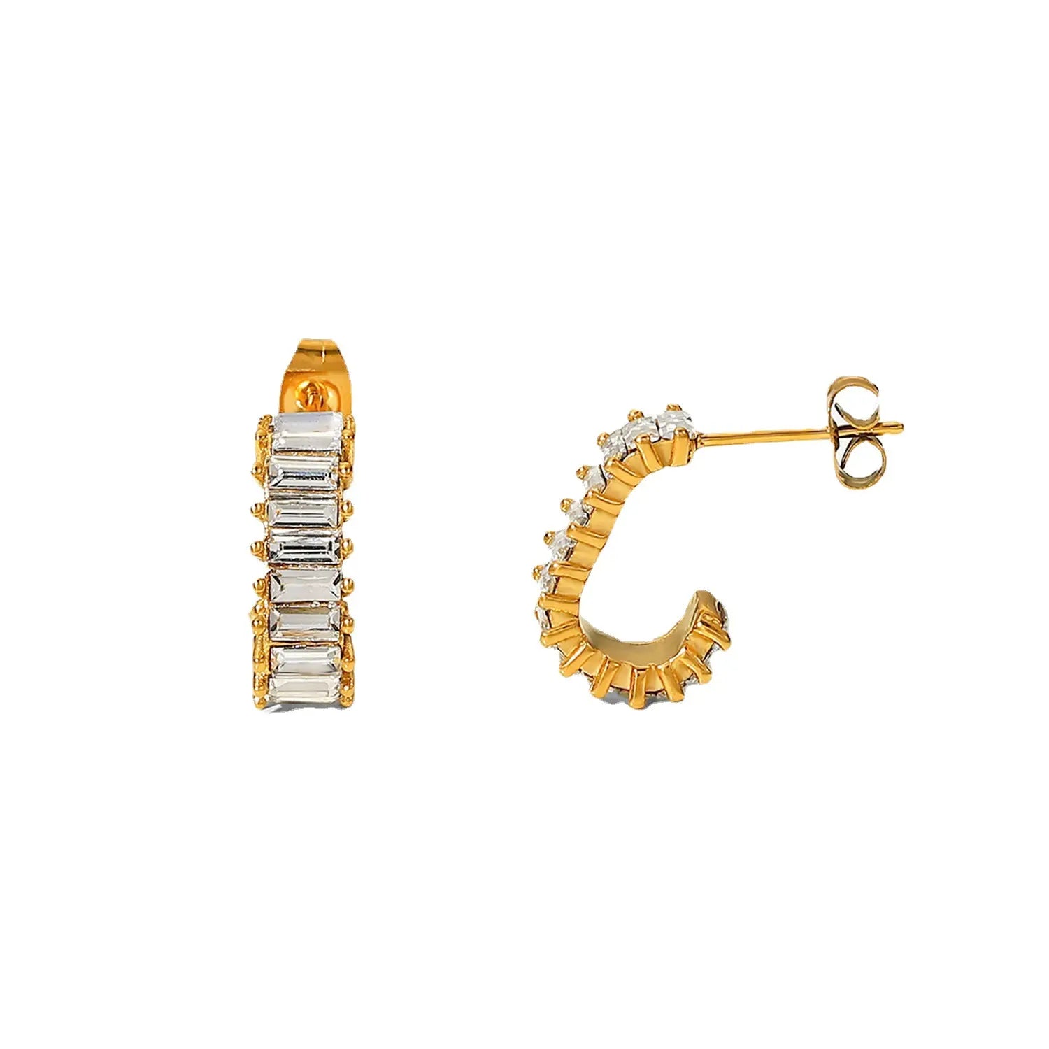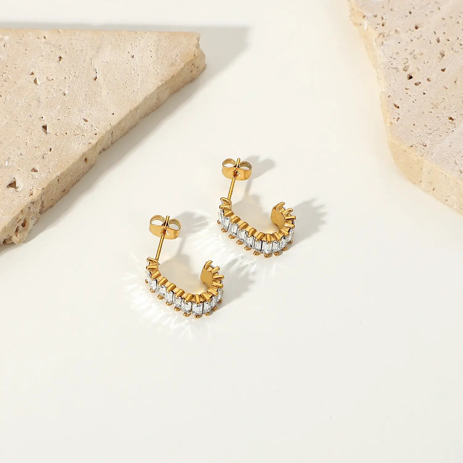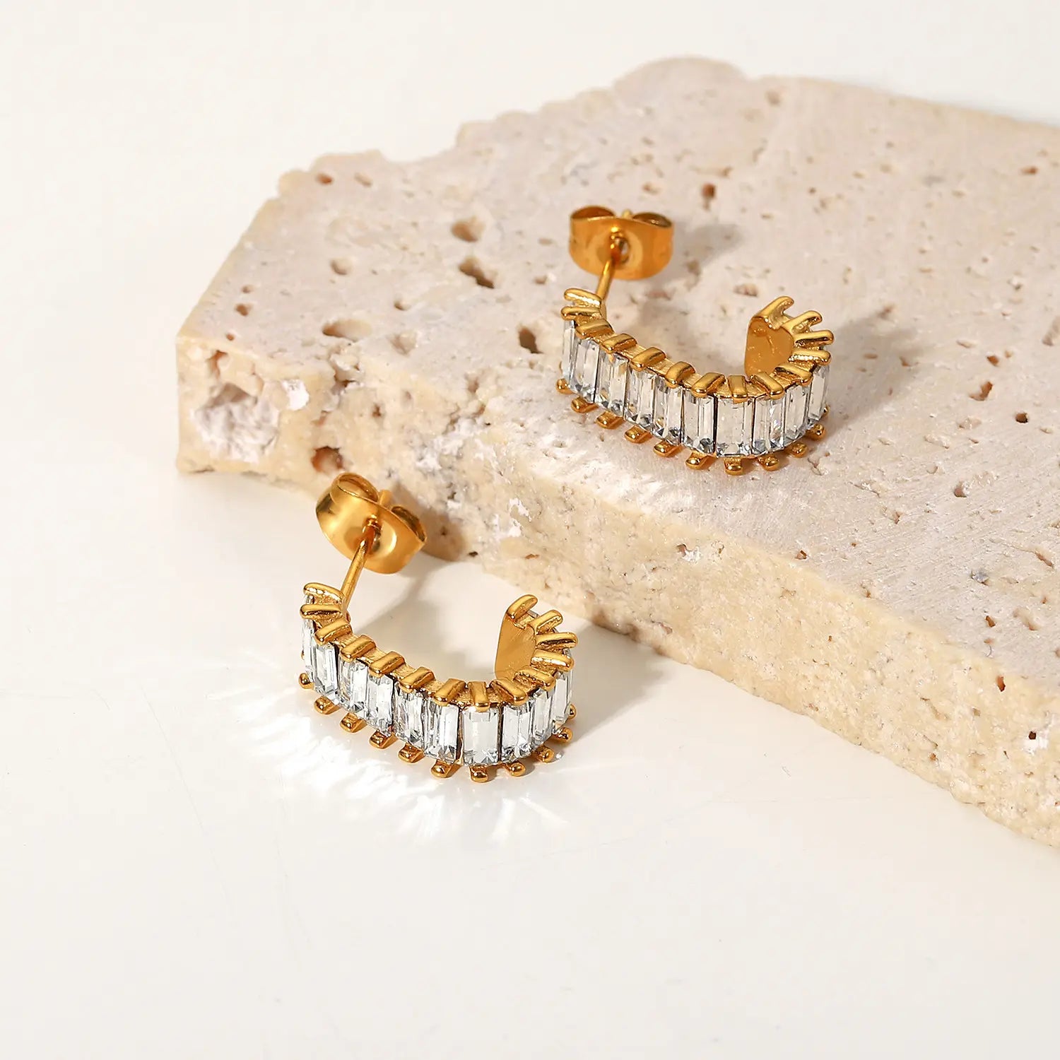 Introducing our "GeoGlow" Geometric C-Shaped Huggie Hoop Earrings — a perfect fusion of contemporary geometry and timeless elegance. Crafted from premium stainless steel and plated with radiant 18K gold, these small huggie hoops feature intricate zircon inlaid designs, adding a touch of sophistication to your ensemble.