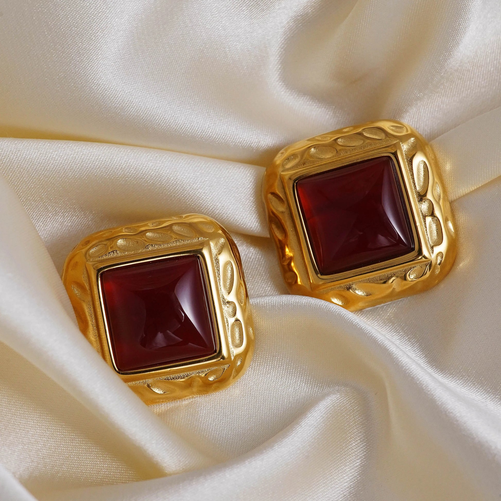 Introducing our exquisite Royal Red & Gold Earrings – a perfect blend of contemporary design and timeless elegance. Crafted with precision from high-quality stainless steel and finished with a lustrous 18K gold plating, these earrings are a celebration of sophistication and durability.