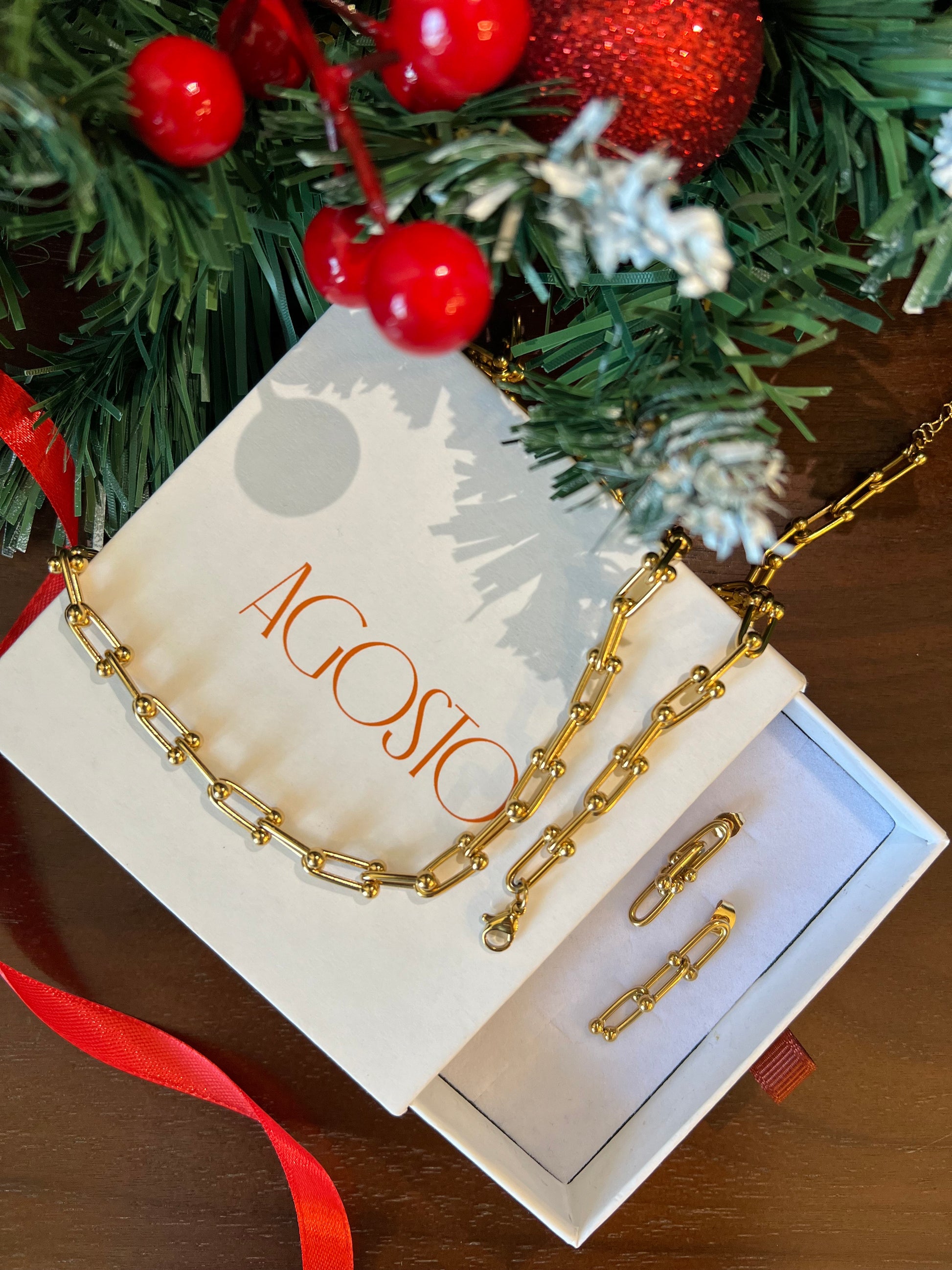 Introducing our "Sierra Ensemble" Jewelry Set — a stunning ensemble crafted with precision and attention to detail, each piece in this set radiates a luxurious glow, embodying the sophistication of 18K gold. The stainless steel foundation ensures not only enduring beauty but also resistance to tarnishing, providing a jewelry set that is both chic and enduring.